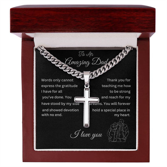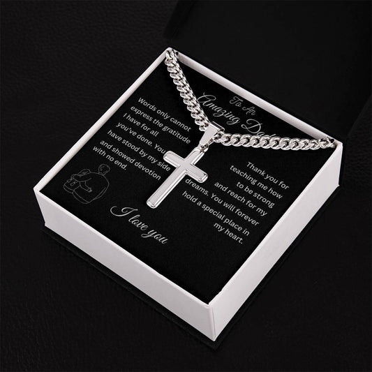 Gift for Dad | Personalized Steel Cross Necklace on Cuban Chain w/ MC